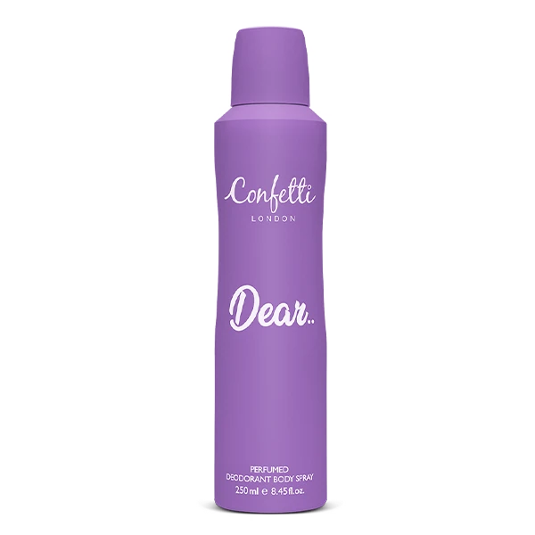 Enclosed in a charming pastel-shaded can, Confetti London Deodorant Body Spray Dear begins with the juicy sweetness of mandarin and peach, offering a delightful opening. The heart reveals a lush bouquet of orange blossom, jasmine, and gardenia, creating a rich floral core. The fragrance then mellows into a warm and comforting base of honey, patchouli, and vanilla, making it a lovely choice for those who adore a sweet, floral, and subtly seductive scent.